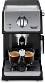 The De’Longhi ECP3220 15-Bar Pump Espresso and Cappuccino Machine is the right choice for the at-home barista. Whether it be an espresso, latte or cappuccino, you can enjoy all your coffeehouse favorites at home with the ECP3220. The 15-bar pressure and the self-priming operation assures quality results every time with minimum start-up preparation and the adjustable controls allow you to make modifications to your preferences. The manual steam wand textures milk to create a rich, creamy froth for evenly textured drinks–just the way you like them.