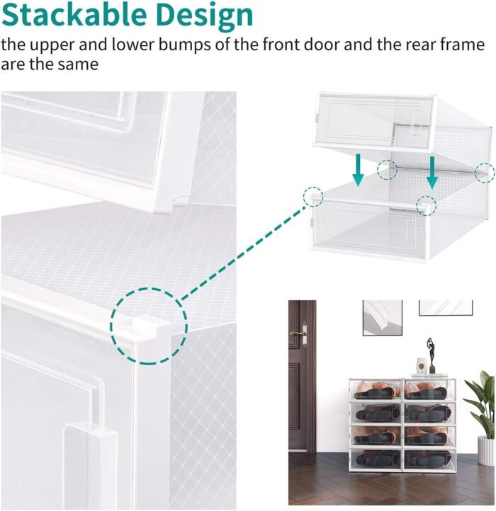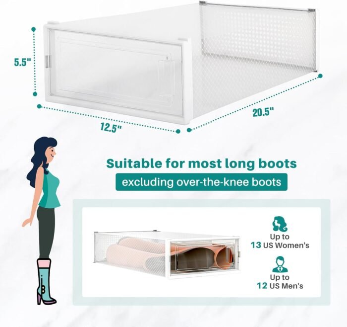 Member’s Mark 4 Pack Stackable Shoe Box offers versatile shoe storage for all ages and genders, protecting your footwear from dust and moisture. Made from highly-transparent plastic, these boxes provide a sleek and clean look that complements any space. The transparent design allows easy viewing and inspection of shoes without opening the box, simplifying organization and management.