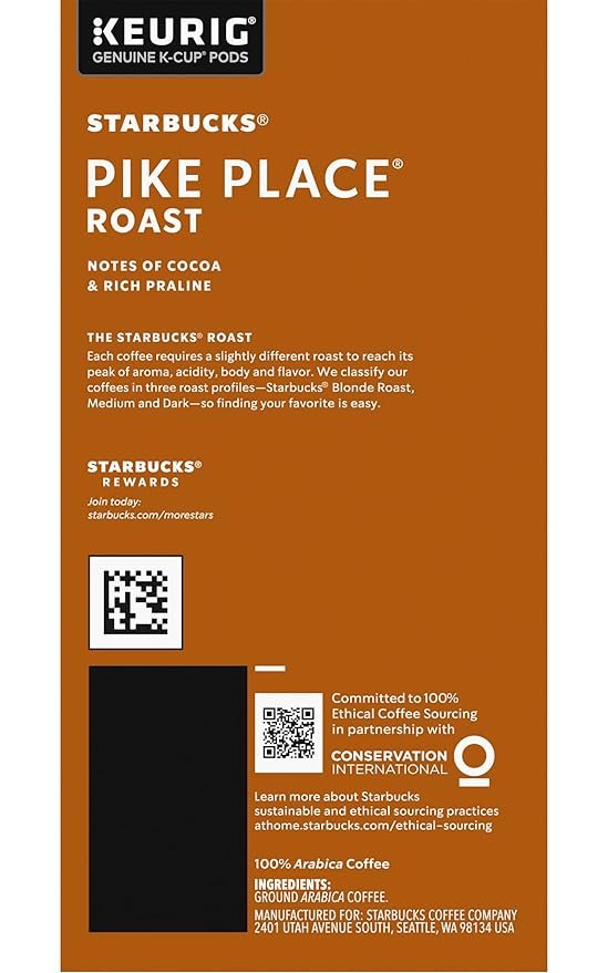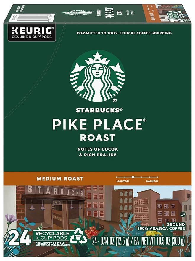 • Includes: 72-count K-Cup pod box of Pike Place Roast medium roasted coffee