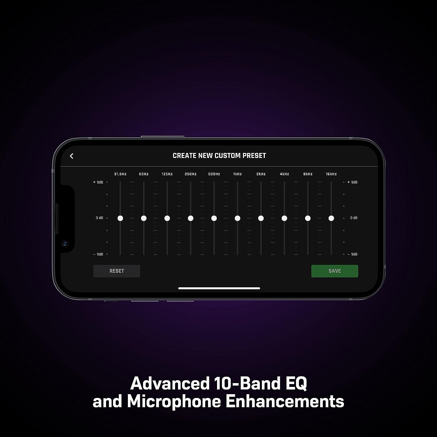 • Advanced 10-Band EQ and Microphone Enhancements: Using either the Turtle Beach Audio Hub mobile app or V2 desktop app, you can dial-in the perfect sound for inbound game audio, Bluetooth audio and outbound chat with a dynamic 10-band EQ and save up to 10 custom presets. Take your audio control to another level and design custom EQs, specific to the type of game you’re playing, and adjust microphone sensitivity, noise gate, monitoring levels and more all directly from the Audio Hub app.